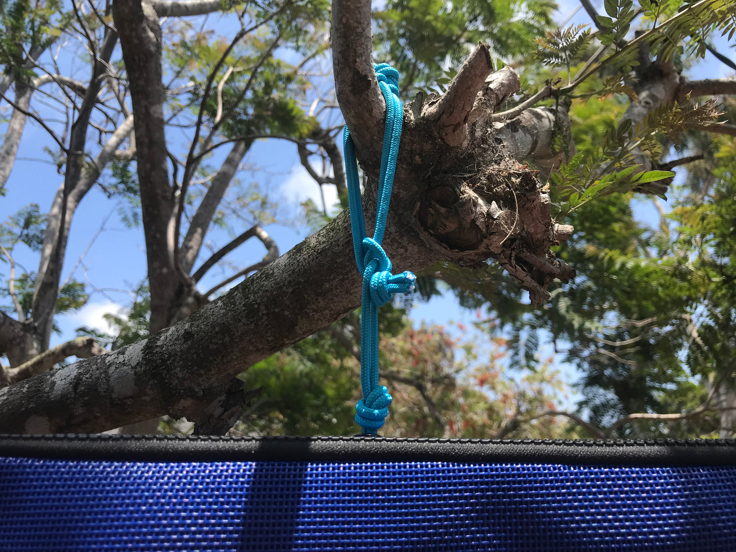 Tuna cord, seine twine, parachute cord, lashing, whipping, small stuff... no matter what you call it, line is the most versatile hanging method. Customizable, additional pieces can be cut to any length to wrap around anything. Hooks, bars, shower head, railing, rod, posts, beams, head rests, and yes... rear view mirrors if you must. Simply add or subtract leash strings as needed and custom cut longer pieces to wrap larger circumferences... leave a piece permanently attached where you store your System. The knot - Cow hitch, Girth hitch, Lark's head, Lark's foot, Ring hitch, Lanyard hitch, Bale Sling hitch, Deadeye hitch, Running eye, Bag Tag loop... or make your own knot. Attach it around anything. Quick attach, quick release. No drilling, mounting, glueing required
